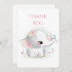 Cuta tarjeta de elefante bebé para agradecer a toda tu familia y amigos. Colores pastel suaves y dulces.