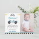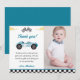 Tarjeta de agradecimiento para fiesta de cumpleaños de niño con coche de carreras