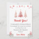 Tarjeta de agradecimiento para fiesta de cumpleaños con árbol de Navidad rosa
