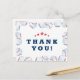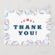 Envuelva la celebración de todas las estrellas de su pequeño bateador con esta tarjeta postal de agradecimiento con temática de béisbol que presenta costuras rojas clásicas, fuentes deportivas y acentos juguetones. Una forma divertida y fácil de mostrar aprecio a sus invitados, esta tarjeta postal se puede personalizar con el nombre de su hijo o un mensaje personalizado para un toque final conmovedor.