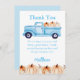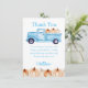 Tarjeta de agradecimiento para fiesta de cumpleaños de camión vintage de polo azul, esta es la tarjeta de agradecimiento para el conjunto.