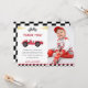Tarjeta de agradecimiento para fiesta de cumpleaños de coche de carreras para niño