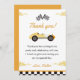 Tarjeta de agradecimiento para fiesta de cumpleaños de coche de carreras de niño