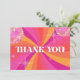 Esta plantilla de tarjeta de agradecimiento de Disco Party en tonos rosa y naranja está aquí para animar tu fiesta de los 70. Esta tarjeta de agradecimiento imprimible es un diseño divertido que presenta colores brillantes y patrones funky para capturar la esencia de cualquier celebración al estilo de los 70. Ya sea que estés planeando una fiesta hippie, groovy, tie-dye, disco o simplemente una divertida fiesta de los 70, esta plantilla de tarjeta de agradecimiento ayudará a crear un aspecto coherente para tu fiesta de cumpleaños con tema de disco, despedida de soltera, fiesta de graduación y más. Simplemente descarga, imprime y envía por correo a los invitados para decir "gracias" por venir.