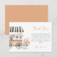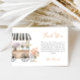 Expresa gratitud con estilo con esta encantadora tarjeta de agradecimiento de acuarela. Con un delicado carro de flores pastel y suaves acentos florales, este diseño añade un toque de romance y elegancia a tu mensaje sincero. Perfecta para despedidas de soltera, bodas y ocasiones especiales, esta tarjeta cuidadosamente elaborada es una forma maravillosa de mostrar aprecio a familiares y amigos. ¡Personaliza el texto del interior o déjalo en blanco para una nota manuscrita!