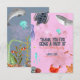 Esta tarjeta de agradecimiento bajo el mar presenta ilustraciones adorables de ballena, tortuga, pulpo, caballito de mar y peces, creando un tema submarino lindo y vibrante. El diseño no solo es personalizable sino también perfecto para la fiesta de cumpleaños de los niños. Deja que el espíritu del océano perdure un poco más con estas encantadoras tarjetas de agradecimiento, haciendo que la celebración del cumpleaños de tu hijo sea aún más memorable para todos los involucrados