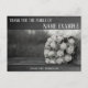 Esta tarjeta de agradecimiento para funerales y dulces tiene un diseño ligero, moderno y elegante. Un ramo de rosas blancas en un banco de un parque Los nombres, el texto y la fecha se pueden personalizar en la plantilla. Diseñado por pASob-dESIGN.