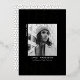 Tarjeta de agradecimiento moderna y de moda para graduación que incluye la foto del graduado con "Gracias" en negrita con letras de Relieve metalizado dorado y fondo negro. Personalice la parte delantera de la tarjeta de agradecimiento de graduación fotográfica agregando el nombre del graduado, el nombre de la escuela y el año de graduación. La parte posterior de la tarjeta de agradecimiento incluye espacio para el mensaje escrito a mano o a máquina con un patrón geométrico en blanco y negro.