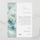 Ducha nupcial Tarjeta de agradecimiento con flores blancas pequeñas. Flores abstractas dibujadas a mano sobre un fondo verde azul. Suave pintura ornada floral de acuarela. Resumen de fondo natural con ramas florales de gypsophila. Hermosas ramas florales, flores elegantes, diseño floral primaveral o veraniego, ramo romántico. Parcela botánica. Delicada flor botánica Bridal Shower Gracias Tarjeta. Colección de flores blancas pequeñas.