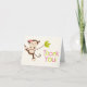 Nuestras tarjetas de agradecimiento para la fiesta de cumpleaños de los niños pequeños monos adorables son el toque final perfecto para la fiesta de cumpleaños temática de monos. Nuestras tarjetas de agradecimiento del mono dulce presentan a un pequeño mono columpiándose de una rama de árbol sobre un fondo marrón elegante. Visite nuestra tienda para obtener invitaciones, tarjetas de agradecimiento, pegatinas de cumpleaños, pegatinas de agradecimiento y sellos postales coincidentes. Petit Tatti