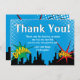 Tarjeta de agradecimiento para la fiesta de cumpleaños de un niño. Fresco y festivo colores primarios brillantes y vibrantes con tono medio, explosiones de nubes y explosiones, ¡bam y pow! Gráfico de superhéroe poderoso para un divertido favor y decoración de la fiesta de cumpleaños de niños superhéroes.