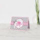 Impresión de chevron gris y blanco con elefante rosado y pájaro encaramado sobre hombros y adornos y etiquetas de aspecto 3D gracias al diseño de la tarjeta.