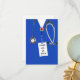Tarjetas de agradecimiento para médico para graduados de la facultad de medicina y notas de agradecimiento para médicos con ilustración de municiones azules de hospital y estetoscopio.