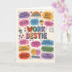 Celebra a tu compañero de trabajo favorito con esta vibrante y divertida tarjeta de felicitación "Work Bestie"! Con letras coloridas de estilo dibujado a mano y frases divertidas como "Alma gemela de la oficina", "Superviviente de reuniones", "Campeón de la carrera del café" y "Leyenda del descanso para comer", esta tarjeta es perfecta para mostrar aprecio al colega que hace que los días de trabajo sean mejores. Ya sea para un cumpleaños, aniversario laboral, regalo de agradecimiento o simplemente porque sí, este diseño alegre captura el vínculo especial entre amigos del trabajo. La mezcla caprichosa de colores brillantes, corazones, estrellas y cumplidos divertidos la convierte en una tarjeta ideal para tu vecino de escritorio, compañero de oficina o socio profesional en el crimen.
