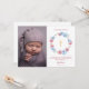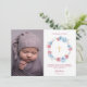 Tarjeta de agradecimiento para bautizo de bebé con flores azules y rosadas. Cuenta con una corona de peonías de acuarela y foto del bebé. Artículos coincidentes disponibles.