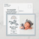 Esta tarjeta de agradecimiento para niño bebé con foto rosa moderna presenta una caligrafía de agradecimiento y estadísticas de nacimiento en la parte frontal. La parte posterior incluye un mensaje cariñoso de toda la familia. Personalízala fácilmente con tus datos y la foto de tu bebé.