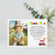 Esta encantadora tarjeta de agradecimiento con tema de golf con la foto de su hijo es muy linda. Cuenta con un brillante carrito de golf rojo junto al green, globos festivos (¡incluyendo un gran número 2!), un pastel de cumpleaños y regalos coloridos, justo lo que se necesita para celebrar el gran día de un pequeño campeón. Perfecta para familias amantes del golf y seguro que añade un toque divertido a cualquier regalo de cumpleaños, dentro o fuera de la cancha.