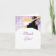 Tendencias de la tarjeta de agradecimiento de la novia y el novio cuenta con una novia y un novio en un fondo floral morado. Invitaciones para la ducha de la novia, sellos postales y pegatinas disponibles en nuestra tienda en www.celebrateitinvites.com. También disponible en una gran variedad de colores. Personalice con su información y ya está listo para ir. ©Jessica Weible