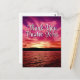Comparte un mensaje sincero de gratitud con esta tarjeta de agradecimiento para pastores con atardecer rosa océano. Con un cielo rosa intenso y naranja-púrpura, esta tarjeta es perfecta para honrar a su pastor, líder ministerial o personal de la iglesia. Puede personalizar la parte posterior de esta tarjeta postal con su propia nota de agradecimiento por su guía, fe y aliento. Puede enviarme un mensaje directo para obtener ayuda para agregar texto.
