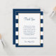 Tarjeta de agradecimiento para recepción de boda con rayas azules y borde dorado. Para consultas sobre cambios de diseño personalizado por la diseñadora independiente, por favor envíe un correo electrónico a paula@labellarue.com ANTES de personalizar o realizar un pedido.