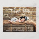 Tarjeta postal de agradecimiento para recién nacido con fuente de pincel blanco moderno