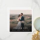 Esta tarjeta de agradecimiento boda incluye una foto cuadrada única con un tratamiento simple y elegante que dice "Gracias". Personalizar fácilmente esta tarjeta con una de tus fotos favoritas del día de tu boda, junto con tus nombres y fecha. Borra el mensaje de vuelta para escribir a mano el propio, o fácilmente el personalizar. Una hermosa tarjeta de agradecimiento, perfecta para sus huéspedes.
