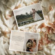Combinando perfectamente la simplicidad y la elegancia, nuestra Tarjeta de Agradecimiento de Boda Minimalista es una expresión refinada de gratitud para sus seres queridos. La tarjeta cuenta con un diseño limpio y moderno, que permite que sus fotos de boda brillen en la parte frontal. La estética minimalista sirve para amplificar la belleza de esos momentos preciosos, asegurando que sean el punto focal de la apreciación.