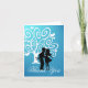 Árbol y pareja de silueta sobre tarjeta de agradecimiento azul brillante para compromiso, boda y más. Agrega texto dentro y personaliza o elimina nombres del reverso.
