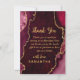 Esta elegante y glamorosa tarjeta de agradecimiento por cumpleaños cuenta con un fondo de mármol rojo agate con falsos toques purpurinas de oro. El texto combina el guión manuscrito y las fuentes sans serif modernas para un aspecto elegante y sofisticado. Esto será perfecto para otoño y cumpleaños de invierno.