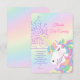 Pastel rainbow unicorn artwork with watercolor wash background and delicate castle illustration. This whimsical fairytale layout features elegant script typography and dreamy pastel hues, perfect for a magical girl birthday party celebration.