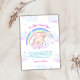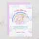 whimsical pastel unicorn rainbow baby shower invitation theme, fairytale princess baby shower theme, adorable watercolor flying unicorn over the rainbow could star, beautiful pink purple and green mint rainbow background. fully editable template, easily customize the text. Great for a baby girl shower party whole year round.