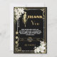 Personalice esta vintage decoración de arte deco floral Great Gatsby roaring 20s Tema de agradecimiento tarjeta fácil y rápidamente, simplemente pulse el botón personalizar it para reorganizar y formatear el estilo y la ubicación del texto. Presenta un marco Art Déco de moda, orquídea blanca de marfil y flores de lirio, perlas brillantes y un esquema de color negro y oro. ¡Artículos coincidentes disponibles en la tienda! (c) El estudio Happy Cat Studio.