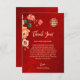 Esta carta tradicional de agradecimiento de los bodas chinos se caracteriza por sus colores tradicionales con flores de peonía pintadas en tonos rojos amarillos y neutros sobre un fondo rojo rubí. El elegante guión manuscrito y el tipo de letra sans serif le dan al diseño un toque moderno. Papelería boda y otros productos disponibles.