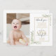 Una linda tarjeta de fotos de 1º cumpleaños con hojas de color verde acuático. Personalice con la foto de los chicas de cumpleaños y el mensaje especial de agradecimiento de cumpleaños en la tipografía de moda. ¡Una forma perfecta de agradecerle a la pequeña Miss ONEMaravillosa! Diseñado por Thisisnotme©