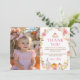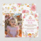 Esta tarjeta de agradecimiento es perfecta para expresar su gratitud a los invitados que asistieron a la fiesta de primer cumpleaños de su hijo. El diseño es festivo y reconfortante, con un lindo chica de calabaza rodeado de flores y hojas de otoño. La tarjeta incluye un espacio para una foto personalizada de su hijo, lo que lo convierte en un regalo especial para sus invitados. El mensaje de la tarjeta puede ser personalizado para agradecer a sus invitados por su presencia, regalos y buenos deseos.