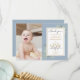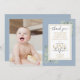 Una linda tarjeta de fotos de 1º cumpleaños con hojas de color agua verde en un fondo azul. Personalice con la foto del niño de cumpleaños y el mensaje especial de agradecimiento de cumpleaños en la tipografía de la moda. ¡Una forma perfecta de agradecerle al pequeño Sr. ONEMaravilloso! Diseñado por Thisisnotme©
