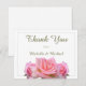Classically elegant wedding flat thank you card features a simple design of pink roses clustered on white background front and back. Ready for you to personalize with your names. Plenty of balnk space on back for you handwritten note. See the imany other coordinating items in this same collection.