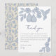 Comparte tu gratitud con un estilo atemporal con esta tarjeta de agradecimiento coordinada de nuestra colección de damasco de campo francés "Perfect Pear". Con ilustraciones de peras dibujadas a mano y una delicada ilustración de un colibrí, esta tarjeta combina el encanto rústico del huerto con una refinada elegancia. Personalízala con tu propia nota de agradecimiento o mantén el texto prellenado para mensajes sin esfuerzo. Una combinación perfecta con nuestras invitaciones, tarjetas de respuesta y inserciones de registro, diseñadas para un conjunto de papelería de boda cohesivo.
