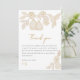 Expresa gratitud con elegancia utilizando esta tarjeta de agradecimiento coordinada de nuestra colección de damasco "Perfect Pear" de estilo campestre francés. Con ilustraciones de peras dibujadas a mano y un delicado diseño de colibrí, esta tarjeta se eleva con una paleta suave de tonos dorados neutros y tipografía refinada. Personalízala con tu propio mensaje o mantén el texto preestablecido para notas sin esfuerzo. Diseñada para combinar con nuestras invitaciones, tarjetas de RSVP e insertos de registro, es el toque final perfecto para un conjunto de papelería de despedida de soltera coherente.