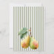 Esta tarjeta de agradecimiento de Perfect Pear une tu celebración con encanto y sofisticación. Diseñada con peras en acuarela, rayas suaves de color verde salvia y elegantes acentos retro, es la forma perfecta de mostrar gratitud después de una despedida de soltera, una fiesta de pareja o una fiesta de compromiso. El estilo clásico de dinero antiguo la hace versátil para cualquier evento elegante, mientras mantiene vivo el divertido tema de la "pareja perfecta". Combínela con invitaciones y letreros de bienvenida a juego para un conjunto perfecto que encantará a los invitados.