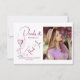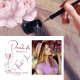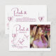 Moderno diseño elegante de perlas y prosecco romántico en rosa y vino con foto para las perfectas tarjetas de agradecimiento de despedida de soltera.