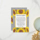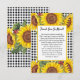 Envía una nota personalizada de agradecimiento con esta Tarjeta de Agradecimiento Personalizable, que presenta un clásico patrón de gingham negro y tres girasoles amarillos vibrantes. Agrega fácilmente tu propio mensaje personal en el área personalizable. Si prefieres un mensaje escrito a mano, simplemente elimina el texto de muestra en el cuadro de personalización antes de finalizar la compra. Perfecta para despedidas de soltera, baby showers, cumpleaños o cualquier ocasión especial.