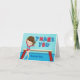 Esta tarjeta de agradecimiento para fiesta de cumpleaños de gimnasia de niña presenta a una linda niña gimnasta morena parada frente a una viga. Lleva un leotardo rojo y sonríe junto a su hermoso monograma azul.
