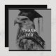 Crear tarjetas únicas de agradecimiento personalizadas para graduación. La parte delantera de la tarjeta tiene, "¡Gracias!" junto con un diseño de grad de águila personalizado. Añade tu mensaje especial en la parte posterior. La parte posterior también muestra su nombre. Tonos blancos y negros. Utilice la plantilla para personalizar.