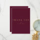 Envía una dulce nota de agradecimiento por los regalos de boda con estas tarjetas de agradecimiento planas que presentan texto dorado moderno y simple. Personaliza el texto personalizado con un monograma minimalista sans serif de los nombres de la novia y el novio. Nota, el esquema de color burdeos y dorado del bosque se puede modificar. No dudes en enviarme un mensaje con cualquier pregunta relacionada con el diseño: ¡estaré encantado de ayudarte!
