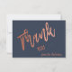 Crea una tarjeta plana de agradecimiento personalizada y espléndida, moda, minimalista y sencilla para tu próximo boda. Esta tarjeta plana de agradecimiento incluye un guión amplio y hermoso de caligrafía escrito con letras falsas de Relieve metalizado dorado rosa con un fondo azul marino. Puede personalizar fácilmente con su propio texto y personalizar a su gusto. Nota: La obra de arte "Gracias -" no puede ser editada. Nota adicional: La impresión de Relieve metalizado de oro rosa es un falso efecto de Relieve metalizado de oro rosa. NO es el verdadero Relieve metalizado de oro de rosa de sellado caliente.