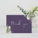 Con delicada vegetación acuarela y elegante guión de agradecimiento en un fondo morado. Puede personalizar con su propio mensaje de agradecimiento al revés, o si prefiere agregar su mensaje manuscrito, elimine el texto. ¡Una forma perfecta de agradecerte! Diseñado por Thisisnotme©