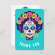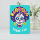 Personalizado Textos Floral Brillante Chica de cráneo de azúcar Gracias Tarjeta - Diga gracias con estilo con esta sorprendente tarjeta con un hermoso cráneo de azúcar adornado con colores llamativos y vibrantes de verano y intrincados acentos florales. Perfecto para los amantes de Halloween, fans de diseños oscuros y extravagantes, o para los que celebran el Día de los Muertos. Personalízalo con tu nombre o texto personalizado para crear una nota sentida y memorable para los invitados de tu fiesta de cumpleaños. ¡Una manera única de mostrar tu aprecio con estilo y personalidad!