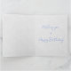 Pedro el Conejo con un fondo texturado de lino gris. Personaliza el saludo de cumpleaños en el interior de esta tarjeta.