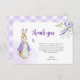 Tarjeta de agradecimiento Peter Rabbit Purple Baby Shower. Elementos coincidentes disponibles.